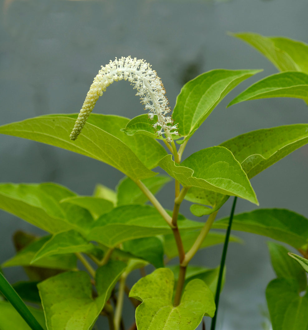 Lizard’s tail blooms from late spring through mid-summer, typically between June and August. Its tiny white flowers are densely packed on the drooping spikes and emit a light, spicy fragrance that attracts a wide variety of pollinators, including bees, flies, and butterflies. It is also a host plant for the Buffalo Moth. After pollination, the flowers give way to small, dry fruits that mature by late summer and early fall. These fruits provide a modest food source for some wetland birds and help disperse seeds through water movement.