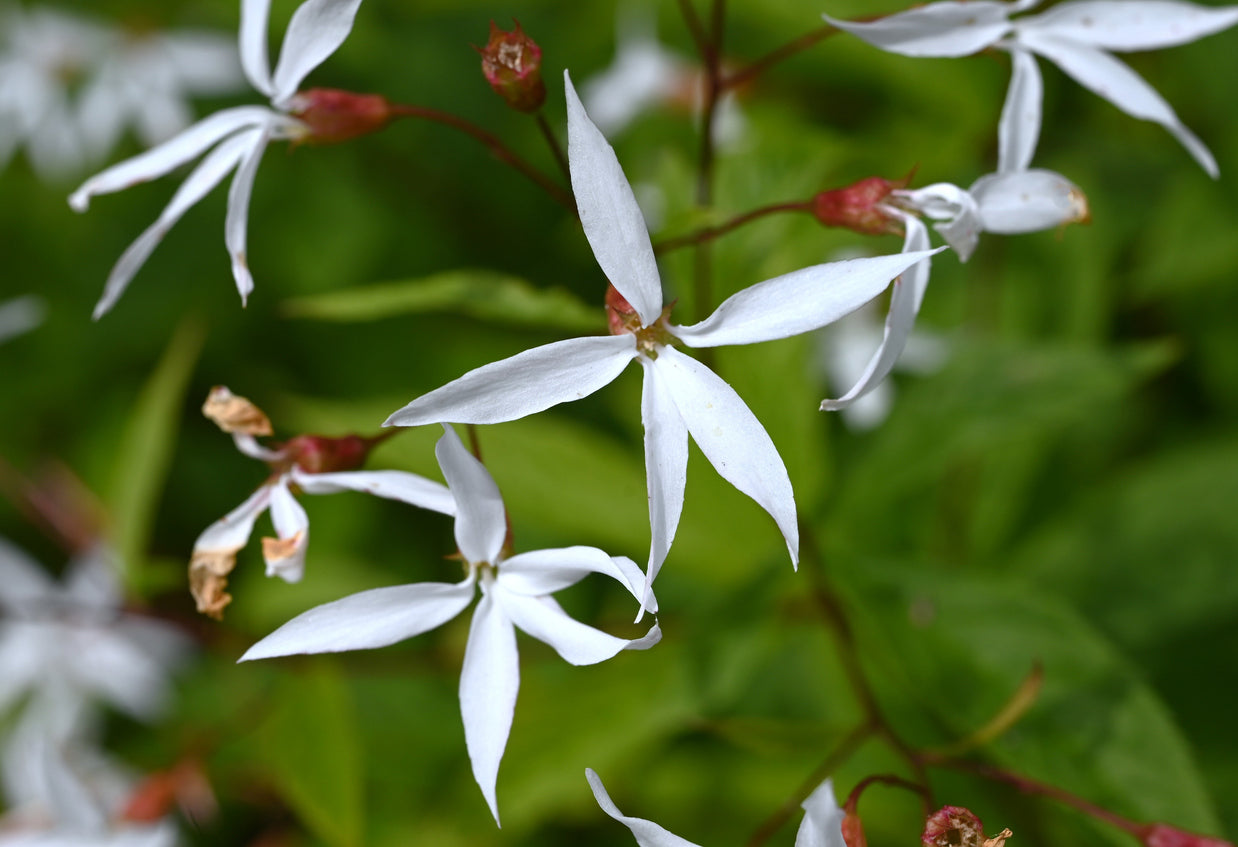 Bowman’s root, is a graceful perennial herb native to eastern North America. It typically grows 2 to 3 feet tall with slender, reddish stems and delicate, three-lobed leaves that give the species its name. Bowman’s Root grows well in partial sun to light shade, making it well-suited to woodland edges, open forests, and lightly shaded gardens. It prefers moderately moist, well-drained soil but can tolerate occasional dryness once established. While it benefits from consistent moisture, it does not perform well in heavy, waterlogged soils.