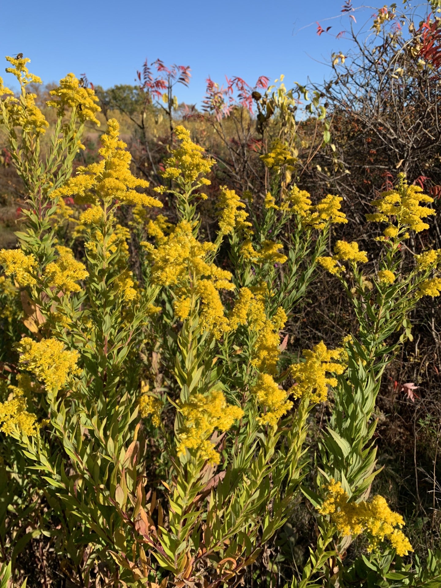 Late goldenrod, is a tall perennial native to much of North America. It thrives in full sun but can tolerate partial shade, favoring moist to moderately wet soils. Unlike some of its relatives that prefer drier prairies, late goldenrod flourishes in richer, loamy soils with consistent moisture, though it can adapt to a variety of conditions once established. Its robust growth habit and rhizomatous root system allow it to form dense colonies that help stabilize soils and outcompete invasive species in open, disturbed areas.