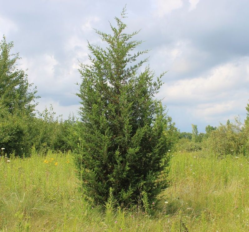 Eastern red cedar, is a hardy evergreen tree that thrives in full sun and adapts to a wide range of soil types, from dry, rocky uplands to limestone outcrops and well-drained prairies. Although it prefers dry to moderately moist soil, it is remarkably drought-tolerant once established and can even grow in poor or shallow soils where few other trees survive.